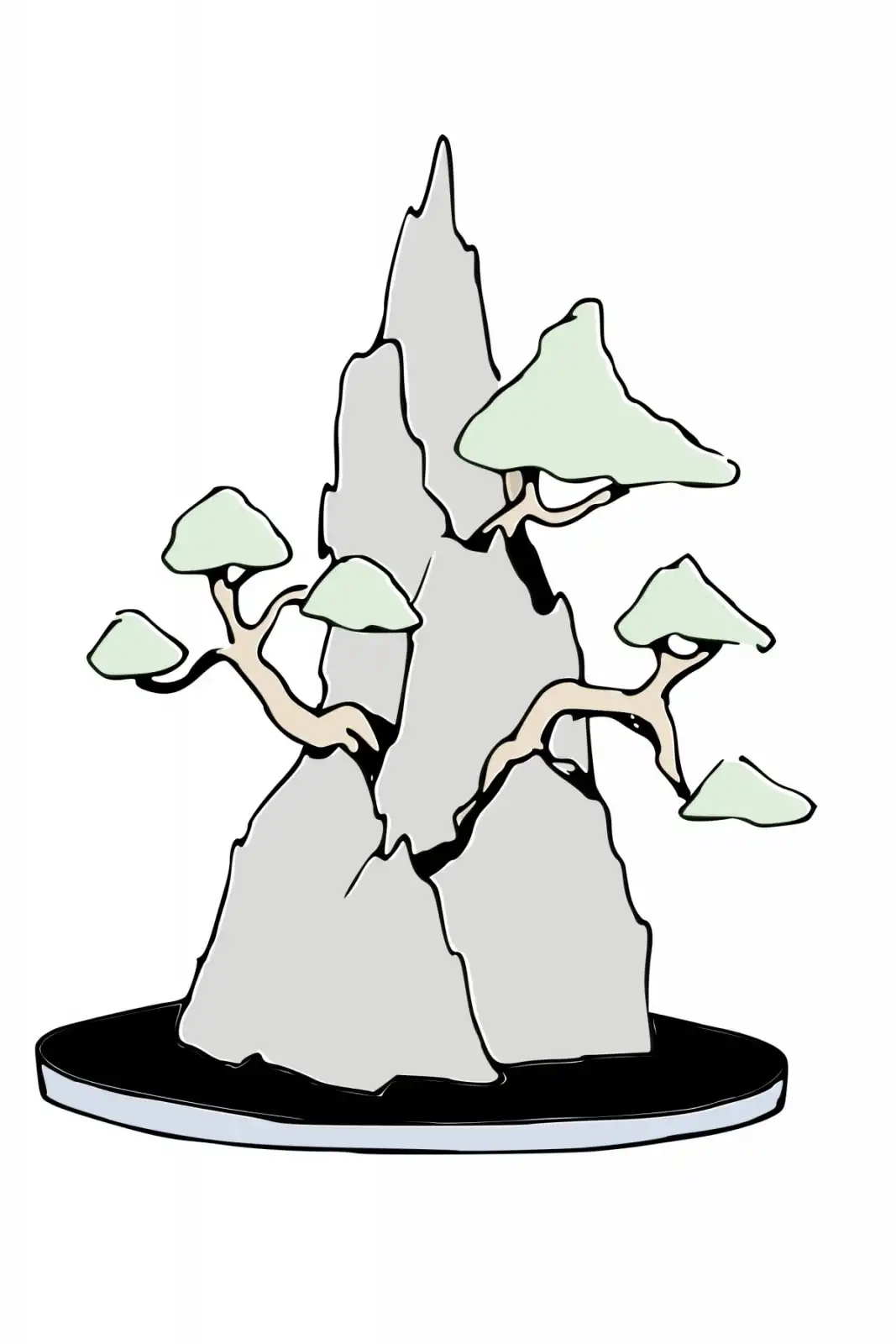 Стиль Секідзедзю (Sekijoju). Це деревце, вирощене на «скелях», для створення цього ефекту потрібно підібрати кілька великих каменів і розташувати їх на поверхні ґрунту в контейнері. Коріння деревця з часом обплітає каміння і заглиблюється в ґрунт. Для цього стилю потрібна рослина з потужною кореневою системою та добре розгалуженою кроною. Клен і сосна відповідають цим вимогам і добре підходять для цього стилю.