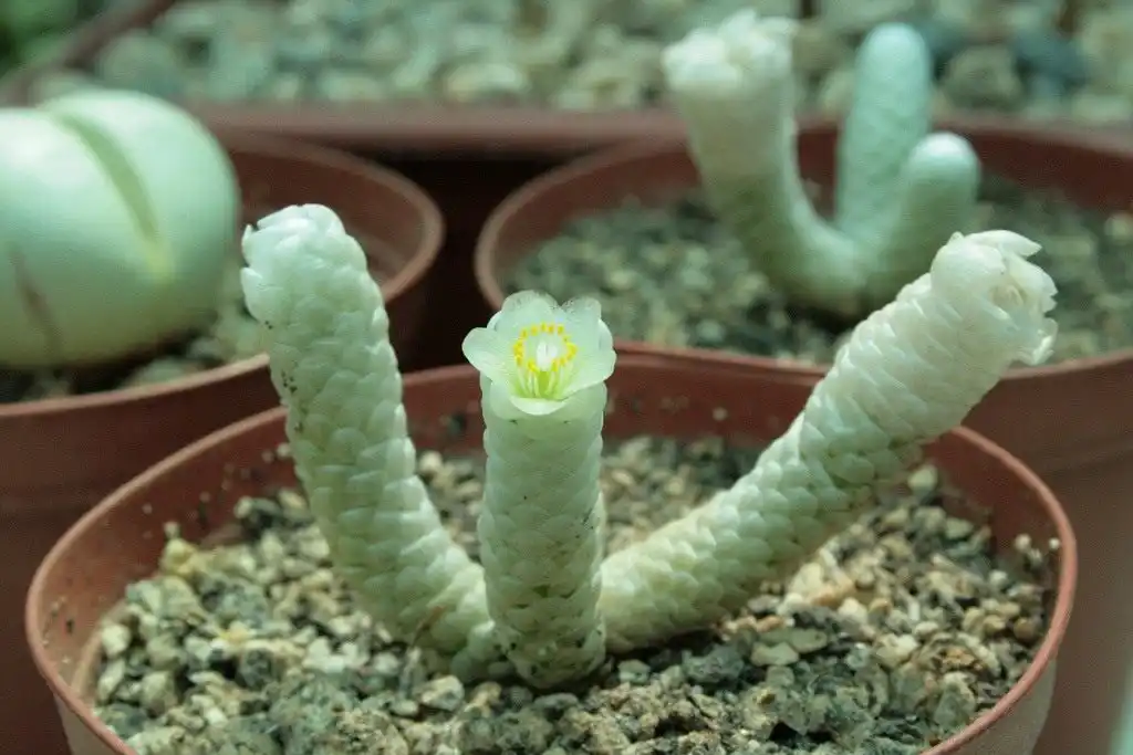 Анакампсероси – це понад 50 видів мініатюрних південноафриканських пустельних рослин. У посушливий період вони можуть сильно усихати, а потім знову наповнюються життям. Саме тому в давнину вважали, що ці «оживаючі» трави мають магічні здібності: «повертає кохання» — так перекладається незграбна назва «анакампсерос» з однієї з мов південноафриканських аборигенів.