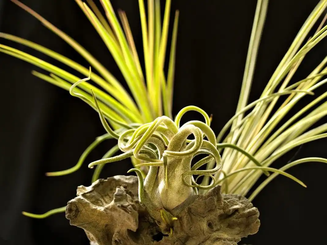 Тіландсія усневидна (Tillandsia usneoides). Листя циліндричної форми близько п'яти сантиметрів довжиною розташоване на спадаючих тонких стеблах. Вони утворюють цілий каскад пагонів. Влітку цвіте непоказними жовтувато-зеленими квітами.