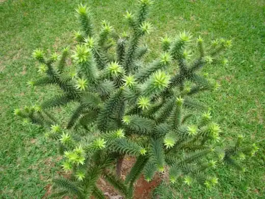 Араукарія. Найкрасивіша кімнатна вічнозелена рослина зі всіх хвойних порід. Гілки розташовуються на прямому стволі правильними горизонтальними поверхами. Хвоя дрібна, лінійна, біля основи потовщена, гостра, але не колюча. Колір хвої яскраво-зелений. Загальний вигляд рослини надзвичайно елегантний, тому араукарією прикрашають окремі колони або підставки.