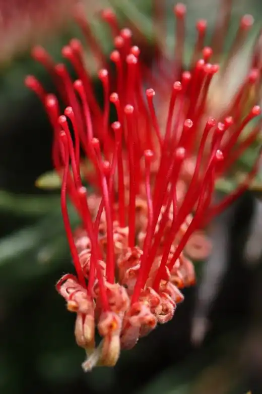 Гревілея (Grevillea, сем. Протейні) - швидкорослий чагарник або дерево з мереживним, папоротеподібним листям. Нижня сторона листа здається шовковистою, вона опушена м'якими волосками. Квітки у гревілеї помаранчеві, зібрані в китиці. Батьківщиною гревілеї є острови Нової Гвінеї та Австралія. У кімнаті вирощують один вид гревілеї - потужну гревілею (Grevillea robusta). Якщо вам потрібна недорога кімнатна рослина-дерево, то вам варто вибрати гревіллю. Вона легко розмножується насінням або живцями і за один рік виростає до 30 см у висоту, а через 4-5 років досягає стелі.