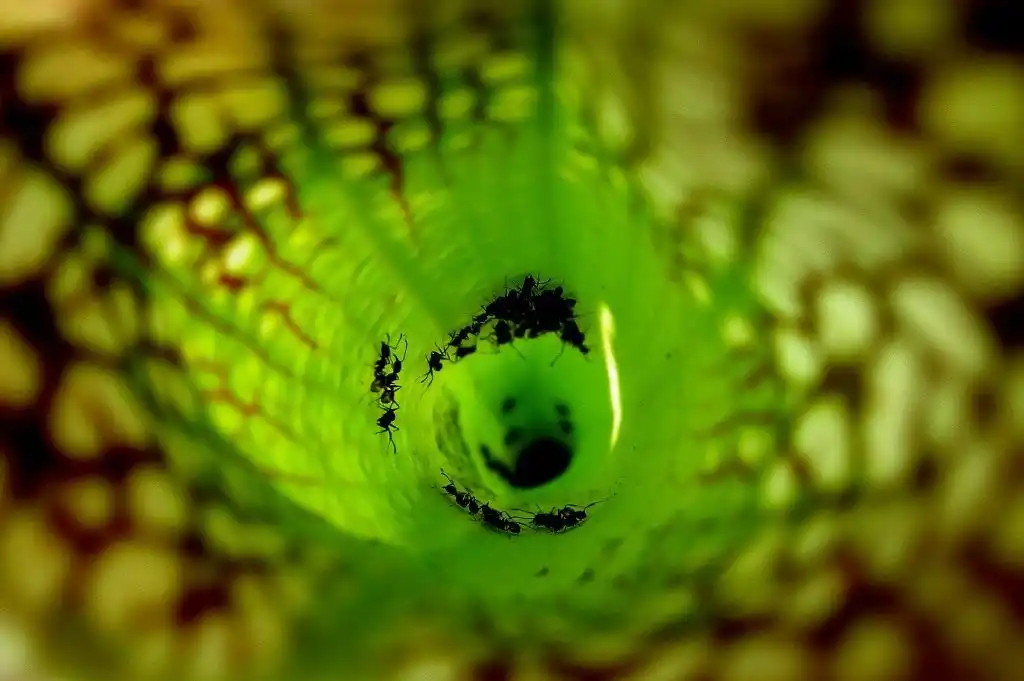 Деякі комахи пристосувалися до життя всередині ловчих апаратів комахоїдних рослин, виділяючи речовини рослини, що протистоять травному соку. Д. Фіш (1976), який спеціально займався цим питанням, пише, що в пастках сарраценії живе нічна моль та її личинки, личинки м'ясної мухи, а також оса сфекс, яка всередині урн навіть будує гнізда. Непрохані гості не тільки знищують велику частину комах, що скупчилися в урнах, але й ушкоджують тканини листя, від чого вони просто не можуть функціонувати як пастки. Таким способом цілим популяціям того чи іншого роду сарраценії завдається значної шкоди.