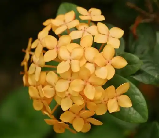 Рід Іксора належить до сімейства Маренові. Найчастіше це невеликі дерева або чагарники з щільним, шкірястим, зеленим або темно-зеленим листям овальної, ланцетної та зворотнояйцеподібної форми. Молоде листя має бронзовий відтінок. Суцвіття іксор зонтикоподібні і кулясті, складаються з безлічі трубчастих квіток білого, жовтого, помаранчевого, лососевого, рожевого і червоного забарвлення. Розміри суцвіть - 8-20 і більше сантиметрів. Квітки іксор складаються з чотирьох пелюсток округлої або загостреної форми, іноді вони скручені уздовж осі. Квітнуть багато видів протягом усього року, але найбільш яскраво та пишно – під час сезону дощів. У кімнатах іксори вибирають час для цвітіння самі, що змінюються світловим і температурним умовам.