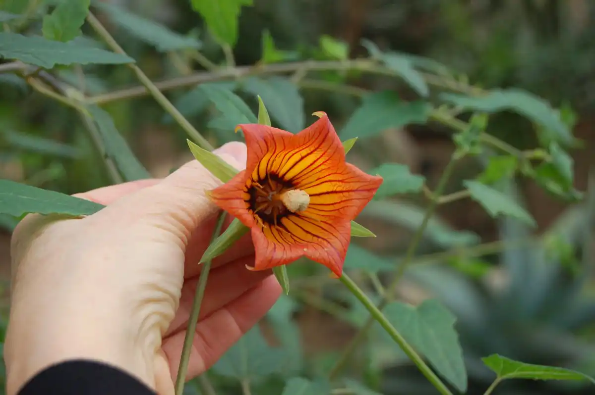 Великі, дзвонові квіти канарини можуть бути від жовтого до оранжевого та темного червоно-оранжевого кольору з темними жилками. Квітки з'являються з кінця осені до зими. Кожна квітка досягає 6-8 см завдовжки. Після закінчення цвітіння на рослині з'являються їстівні овальні м'ясисті ягоди розміром з волоський горіх. Ягоди спочатку бувають червоно-жовтогарячого кольору, а в міру дозрівання вони чорніють.
