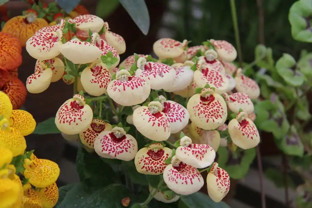Кальцеолярія відноситься до улюблених весняних красивоквітучих рослин, хоча в кімнатних умовах її вирощувати і розводити досить складно (рослина віддає перевагу прохолодним приміщенням). Квітки кальцеолярії дуже своєрідні за формою - пухирчасті та двогубі (нижня губа велика, здута, куляста, а верхня - надзвичайно маленька, ледве помітна). Квітки нерідко вкриті різноманітними плямами, крапками. Період цвітіння триває з березня до червня протягом одного місяця. На рослині буває від 18 до 55 квіток.