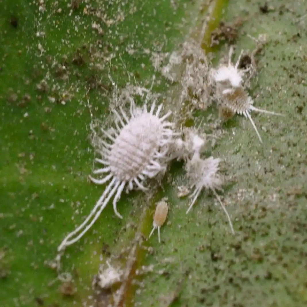 Щетинний борошнистий червець (Pseudococcus longispinus) — шкодять рослинам самки та личинки. Тіло дорослої самки 3,5 мм видовжено-овальної форми, помаранчевого або рожевого кольору, вкрите білим нальотом. У хробака добре розвинені ноги, завдяки чому вони можуть легко перебиратися з рослини на рослину. Самки живородні. Зазвичай вони скупчуються у вигляді колоній на нижній стороні листка, на гілках, пазухах листя і на молодих верхівках пагонів.