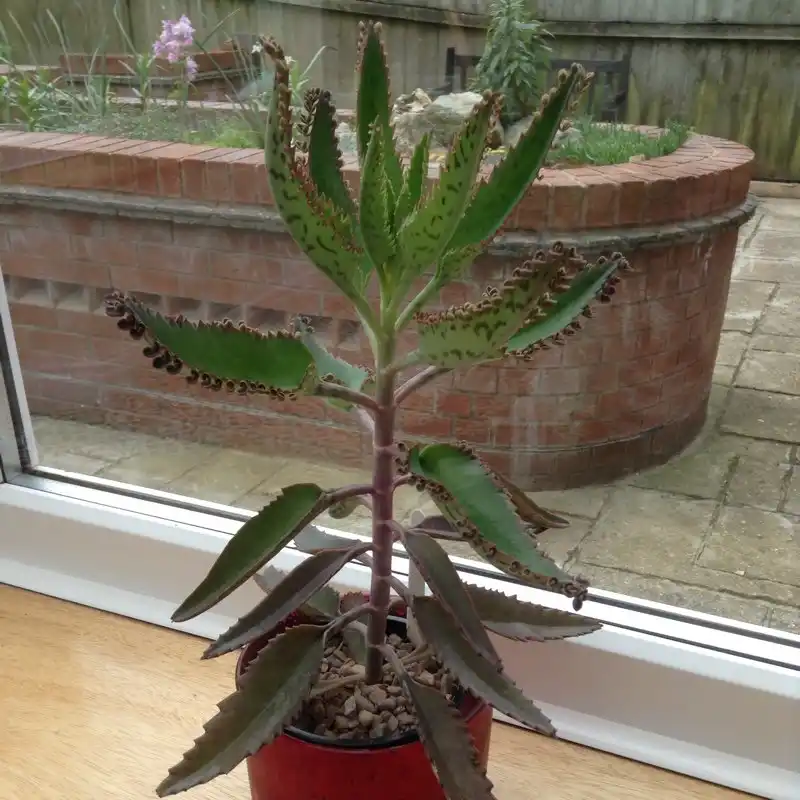 У калахое Дегремона (Bryophyllum daigremontianum) Листя довгі, трикутні і як би складені навпіл по середній жилці. Поверхня листя темно-зеленого кольору, але в нижній частині пластини легко розрізняються фіолетові плями. Цю рослину навряд чи можна назвати красивою – довге гостре листя з численними дітками нагадує швидше пащу крокодила, ніж квітка. Напевно, тому багато хто його так і звати – крокодил.