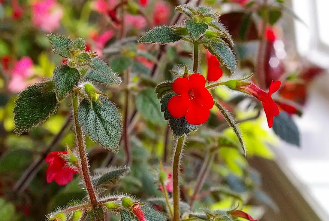 Найбільшу увагу селекціонерів та колекціонерів завжди привертав ахіменес прямостоячий (Achimenes erecta). Ця потужна, кущиста рослина з опушеними червонуватими пагонами і зубчастими, досить світлими листками, що прославилася своїми червоними, сліпучо червоними, несиметричними квітками діаметром до 2-х см. Дрібнокольоровість не заважає ахіменесу зберігати високу декоративність, він виглядає як візерункове.