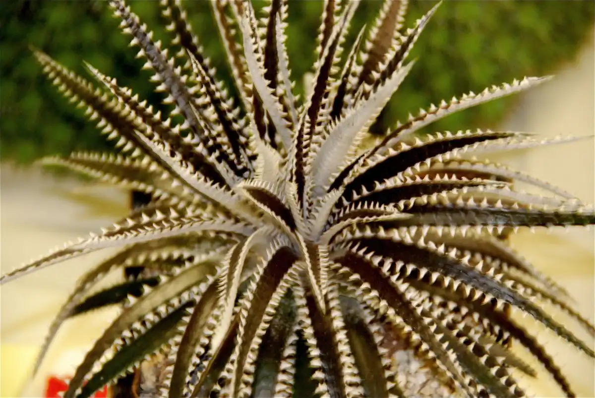 Діккія Фостера (Dyckia fosteriana) - один з найцінніших видів, що здалеку здається строкатим, а поблизу - дивує приголомшливою грою візерункового ефекту через різьбленого краю тонкого листя. Дуже густі розетки утворені листям до 17 см завдовжки. Верхівка витончено відгинається, завдяки чому вузькотрикутна форма здається ще елегантнішою. Краї не просто зубчасті, а хвилясто-порізані, з химерно закрученими сірими шпильками. Контраст шипів і темного забарвлення листя створює ефект брижів або смужки, хоча рослина зовсім не строката. Опушені тонкі квітконоси з ланцетним листям несуть щільні опушені колоски суцвіть з помаранчевими квітками, які відрізняються не вільними, а пелюстки, що зрослися.