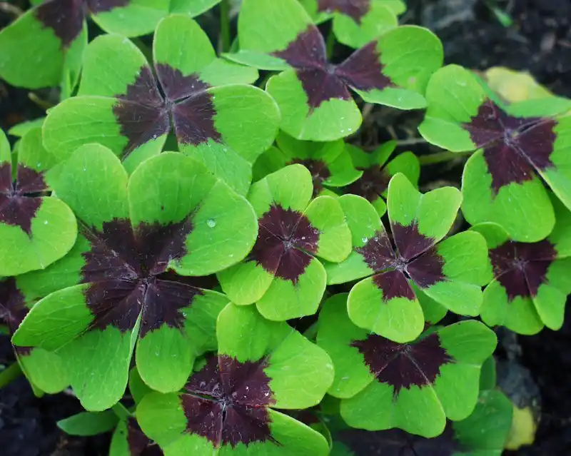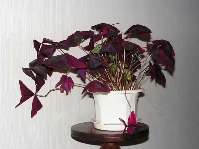 Своїм темним, чорнильно-фіолетовим листям з яскравішою плямою по центру прославилася ще одна кольорова кислиця – оксаліс трикутний (Oxalis triangularis). Білі, світло-лілові або рожеві квітки здаються майже порцеляновими на тлі пухкого кущика довгочерешкового листя.