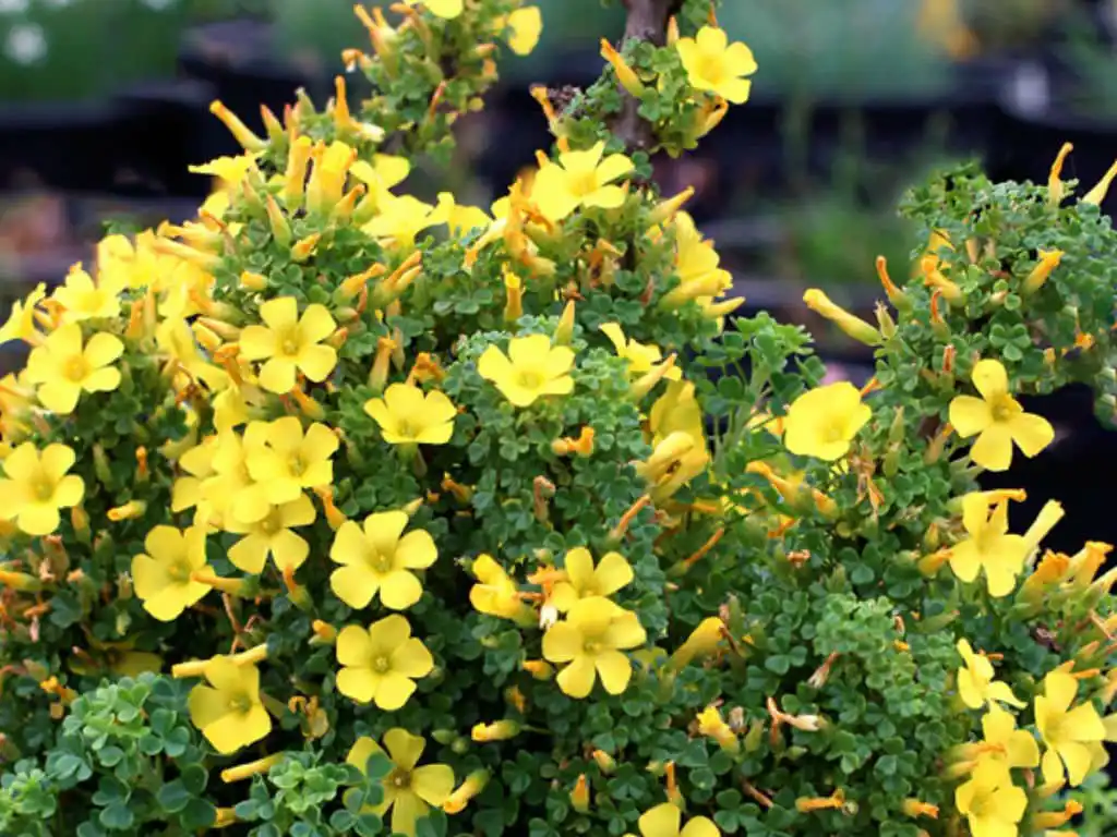 Деякі оксаліси здатні цвісти майже весь рік, за винятком зими. Через 25-40 днів після пересадки з'являються перші квітки, а потім протягом 8-9 місяців над трепетним листям височать на гнучких довгих квітконіжках пухкі суцвіття.