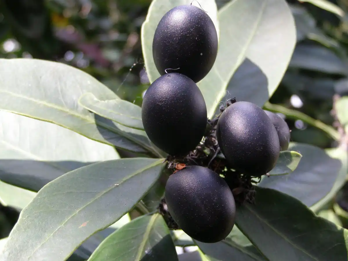 Щоб досягти плодоношення кімнатної акокантери, доведеться самостійно подбати про запилення. Великі, чорнильні, з гарним відблиском, плоди гронами прикрашають гілочки і виглядають як справжнє намисто.