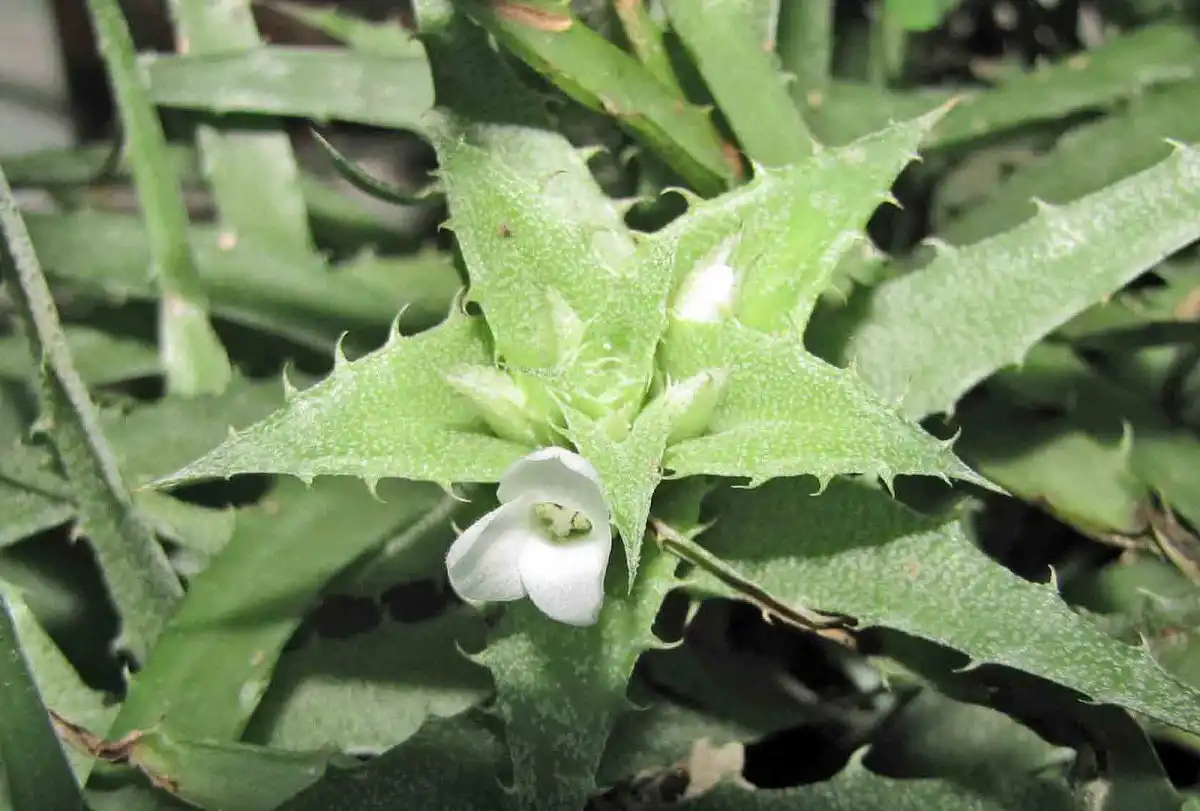 Короткі квітконоси з верхнім листям, майже рівним по довжині колоску суцвіть, виглядають ефектно, але не надто яскраво. Листоподібні приквітки підкреслюють дрібні, з вільними пелюстками сидячі салатово-білі квітки.