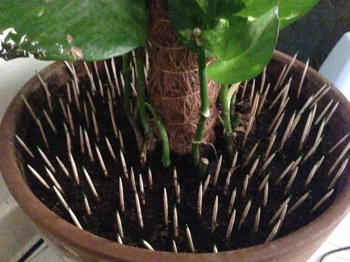 Використання липких, шарудливих матеріалів або іграшок з пультом керування для відлякування молодих котів. Двосторонній скотч, фільгу, що шарудить, або целофан, маленькі автомобілі розміщують навколо кімнатних рослин для відлякування звуками або неприємним досвідом, ці методи спірні і вимагають аналізу переваг і капризів конкретної кішки.