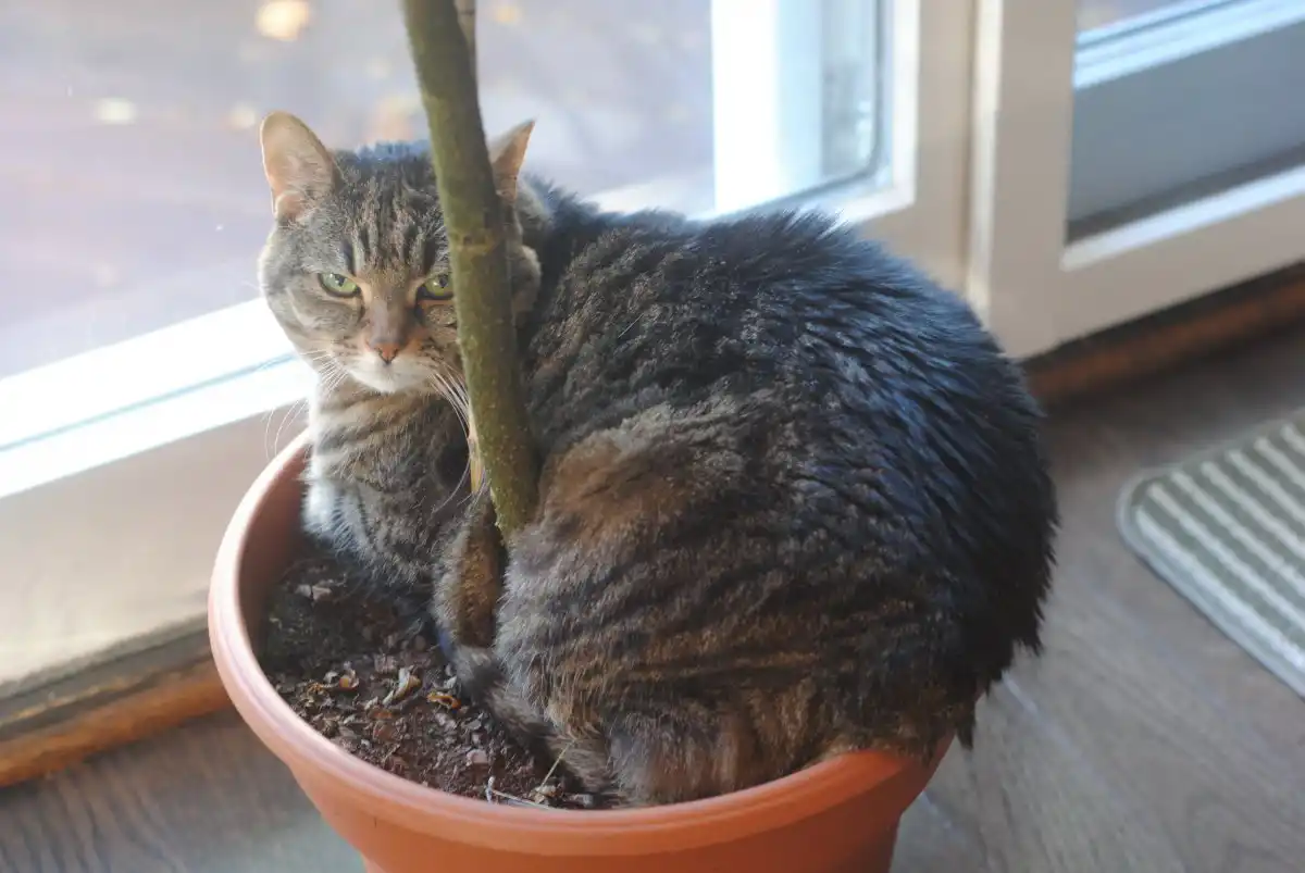 Кішок часто залучають не стільки самі рослини, скільки ґрунт у горщиках. Поритися в землі з санітарними цілями чи для забави — велике задоволення. Але будь-яке таке розривання обертається лихом для самих рослин і всього, що їх оточує. Особливо ваблять пухнастих великі горщики та діжки. Вважається, що найчастіше підривають землю кішки, підібрані з вулиці, але це радше теорія та питання якості навчання кішки.