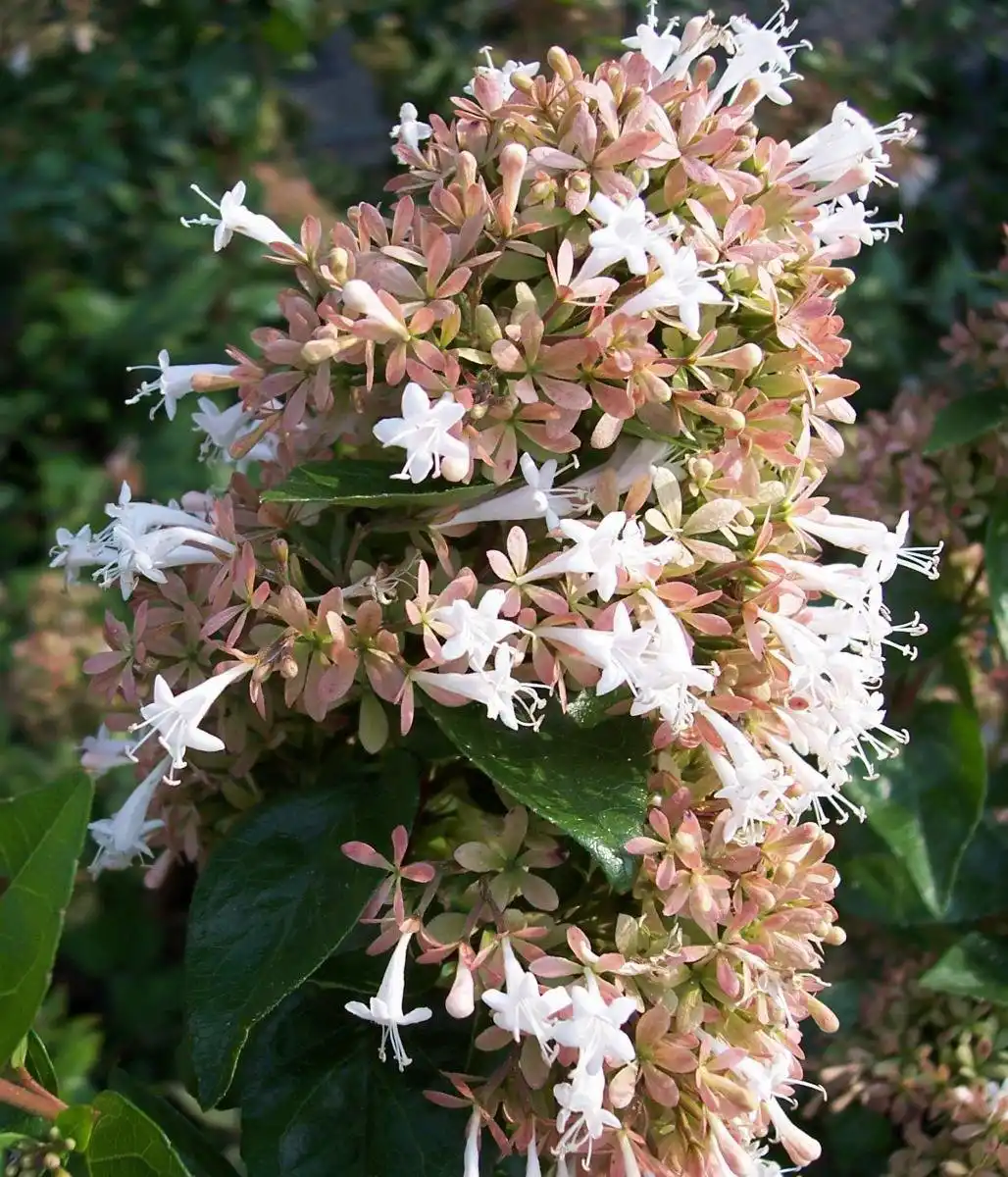 - Абелія китайська (Abelia chinensis) - напіввічнозелений, рясно квітучий вид з особливо витонченою кроною з пагонів, що никнуть, овальним темним листям і білими дзвіночками квіток, на яких несміливо проступають червоні штрихи.