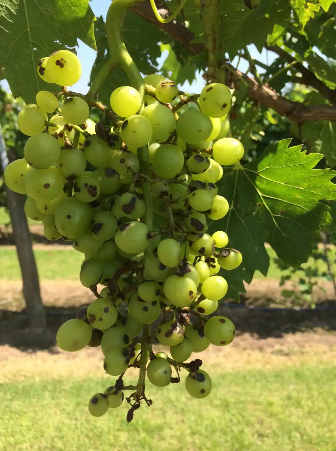 Антракноз на виноград нападає рідко, але, як то кажуть, влучно. Він розвивається буквально на всіх надземних органах рослини, проте страждають від нього тільки молоденькі тканини, вік яких не більше місяця. Спочатку на листочках з'являються сіруваті плями з червоною або темною облямівкою, які ростуть, збільшуючись в два рази, після чого тканина листа просто випадає і утворюється наскрізний отвір.