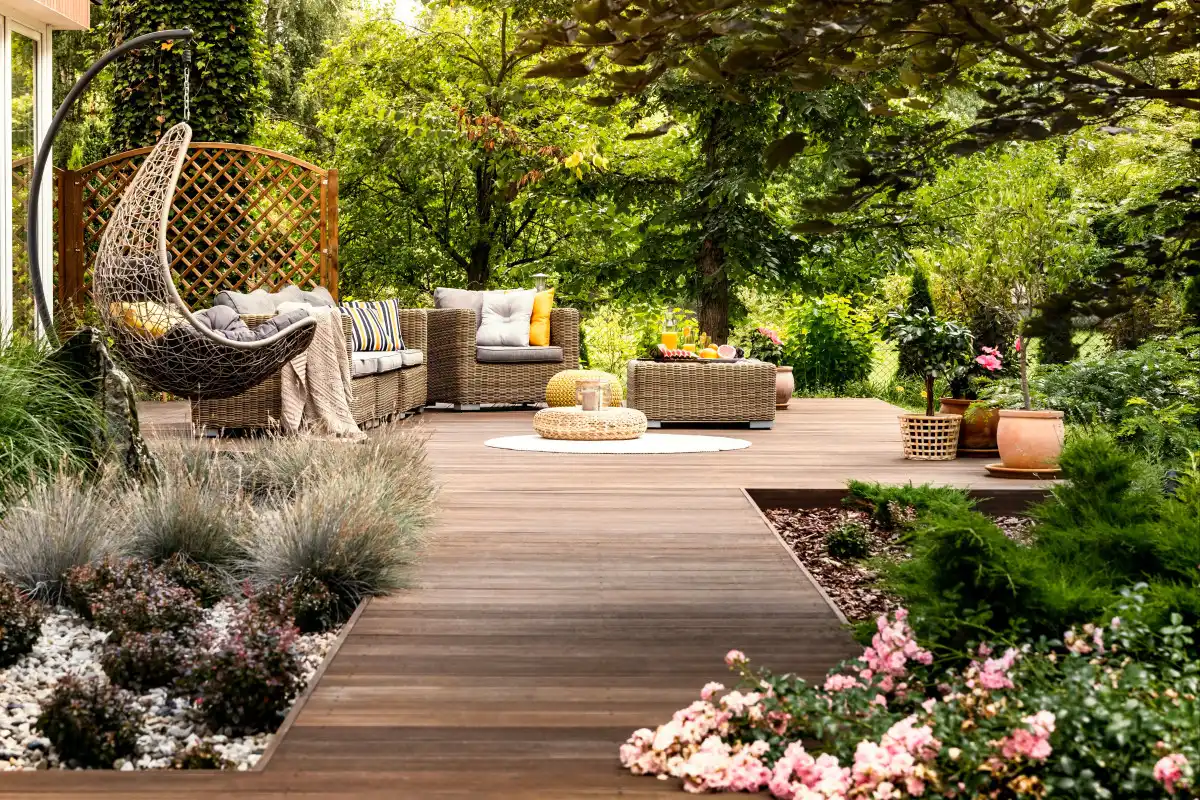 Сучасний садок означає і особливе планування. Стає більше місць для відпочинку, усамітнення, спорту, йоги, медитації та творчості. З'являються куточки здоров'я та ароматерапії, сенсорні стежки та сади. У моду входять «вітальня» просто неба – особливі простори, призначені для дружнього спілкування. Часто центральним елементом таких "віталень" стає коло як форма: великий круглий стіл або кругова лава на свіжому повітрі.