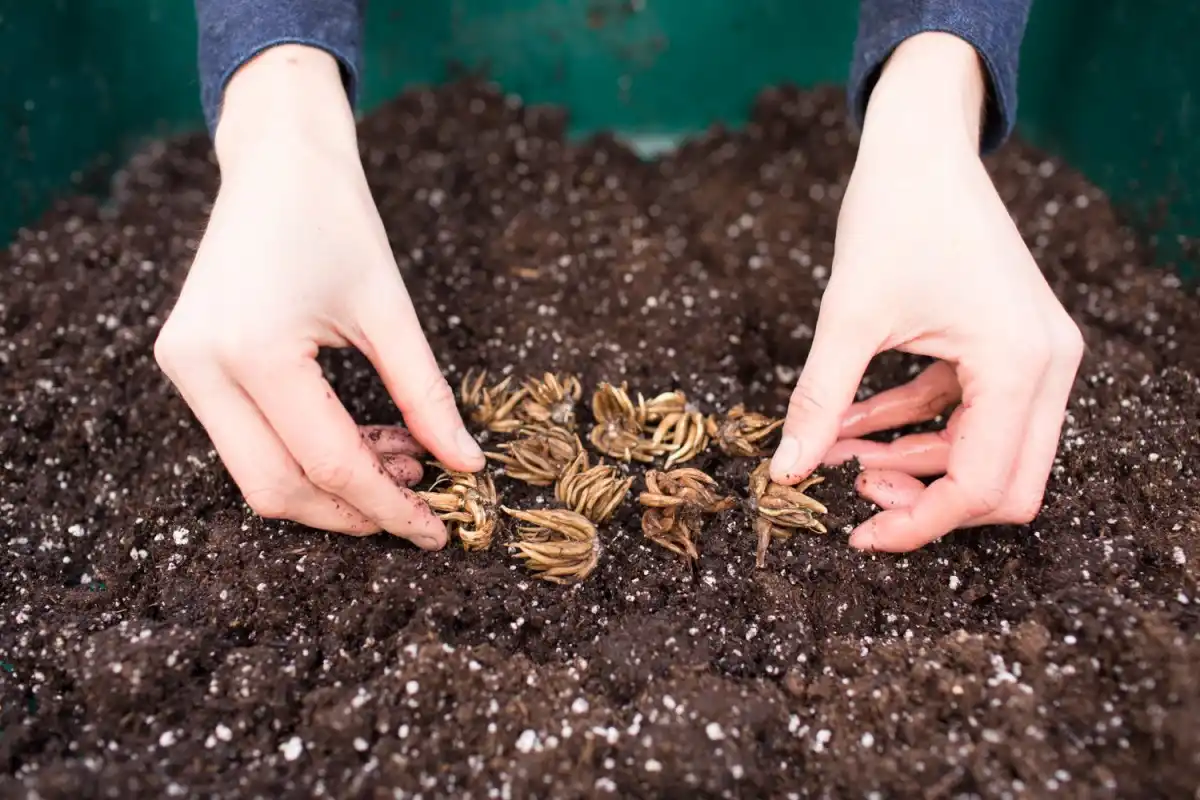 Набряклі шишки висаджують відростками вниз на глибину 4-8 см у травні, коли мине загроза поворотних заморозків. Оптимальна температура для розвитку ранункулюса – 15-20 градусів.