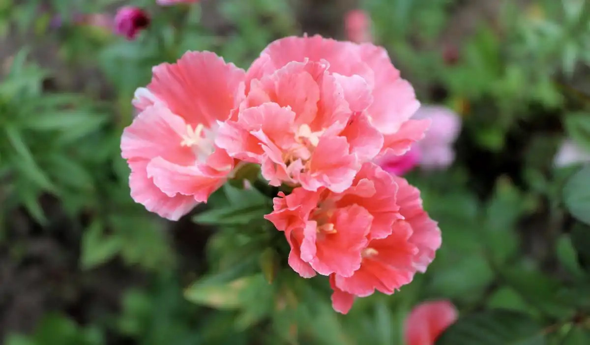 Приємне лососьове забарвлення мають махрові квітки сорту «Сонечко». Квітки діаметром 3-4 см, може рости до 70 см.