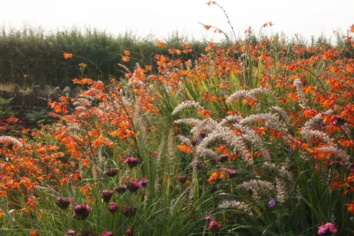 Трав'янисті багаторічники і трави займають не менше 70% площі квітника. Залишилося місце можна віддати невибагливим літникам, дворічникам і цибулинним. При цьому важливо не забути про терміни цвітіння і підбирати рослини, що квітнуть не тільки влітку, але і навесні і восени.