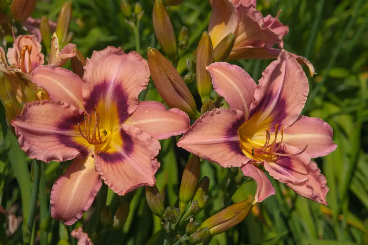 Також дачники вирощують інші види з жовтими, коричневими, рожевими, і, рідше, фіолетовими квітками. Розпускаються з кінця травня по початок серпня (залежить від сорту). Сучасні гібриди, виведені в процесі схрещування різних видів, об'єднані в загальний вид - лілійник гібридний (Hemerocallis hybrida). Всі вони зовні схожі: з великими квітами воронковидної форми, м'ясистим корінням і подовженим листям, що утворює ефектну дугу.