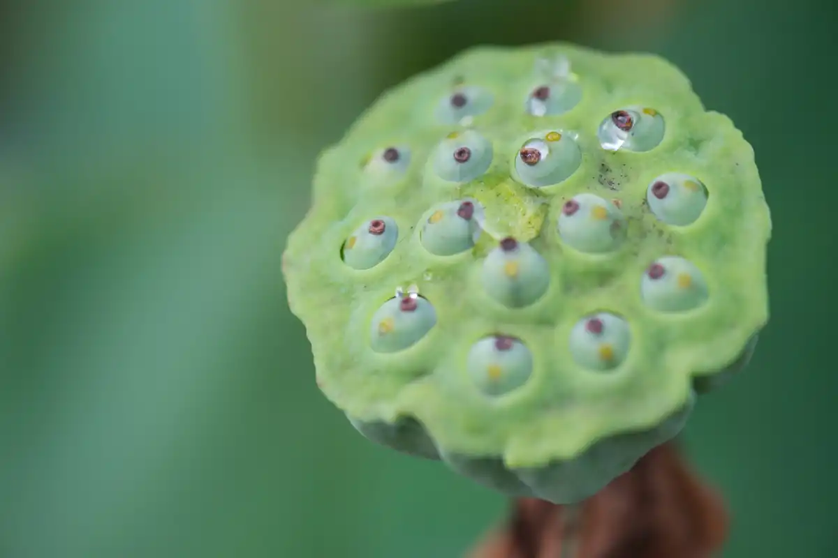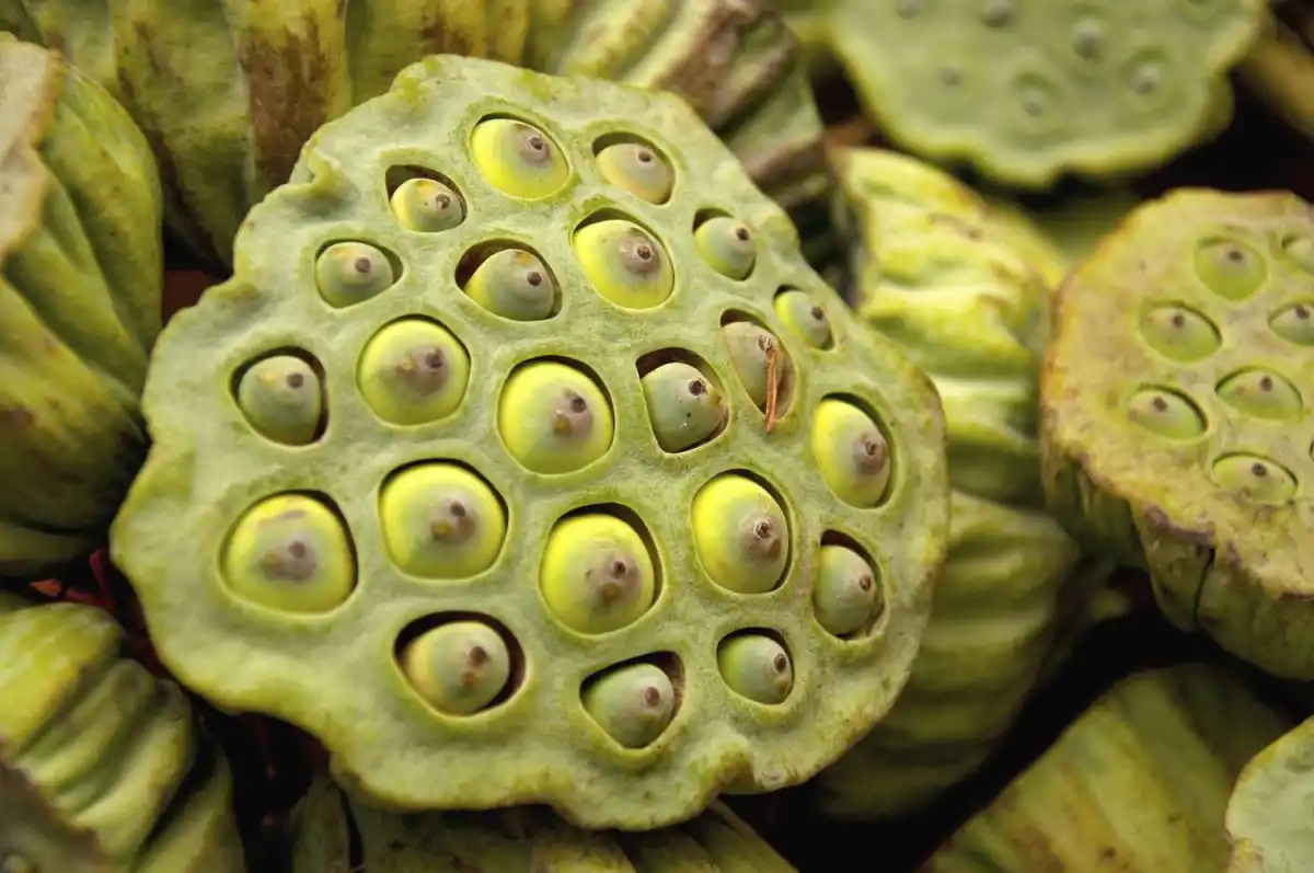 Коли пелюстки обсипаються (а лотос тримає квітку всього три дні), залишається зелене квітлоложе у вигляді перекинутого конусу. кореневища лотоса — популярне блюдо.