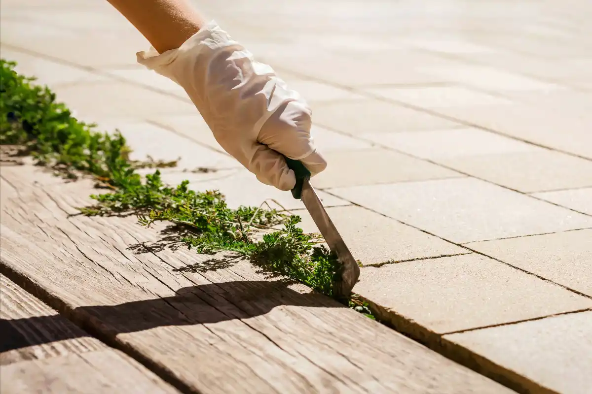 Порада! Видаляти з плитки бур'яни краще після дощу, з вологої землі їх легше підчепити або вирвати з коренем.
