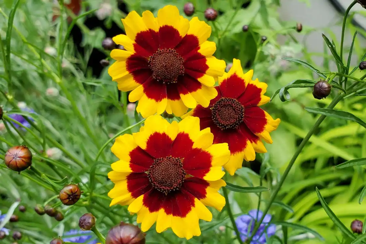 Ці стійкі багаторічні рослини цвітуть яскравими, веселими, схожими на квітки. Як правило кореопсис буває різних відтінків золотого і жовтого або двоколірним з бордово-червоним центром. Він любить жаркі та сухі умови. Цвіте з початку до кінця літа, залучаючи в сад метеликів і бджіл. Найкраще і найшвидше розростаються два види кореопсису - великоквітковий і ланцетовидний. Непогано наростає і кореопсис каламутний «Загреб» з дрібнішими зірчастими квітками.