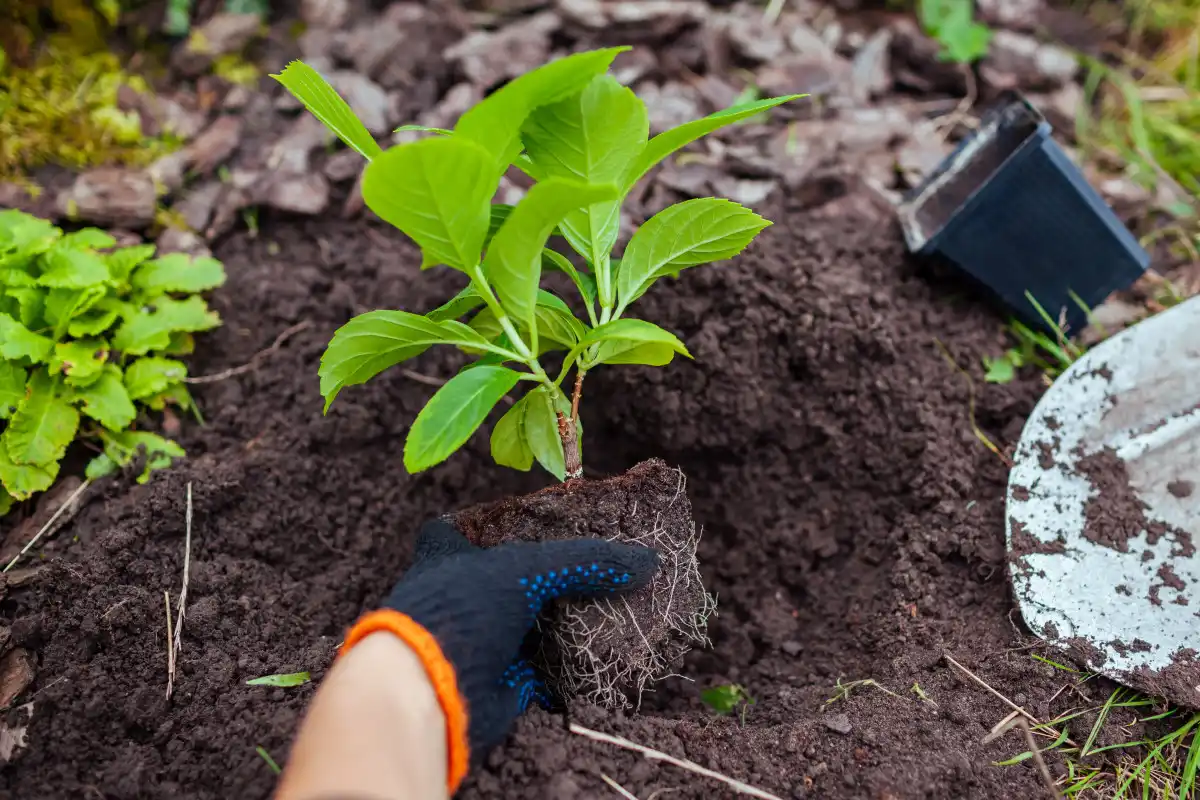 Коренева шийка висадженої гортензії має бути, приблизно, на одному рівні з поверхнею ґрунту. Після посадки саджанець рясно поливають, а пристовбурне коло мульчують. Як мульчу можна використовувати торф, компост, хвою, тирсу, тріску або дрібнотроблену кору дерев хвойних порід. Мульча добре запобігає випаровуванню води і захищає коріння від перегріву в спеку і від вимерзання в холод.