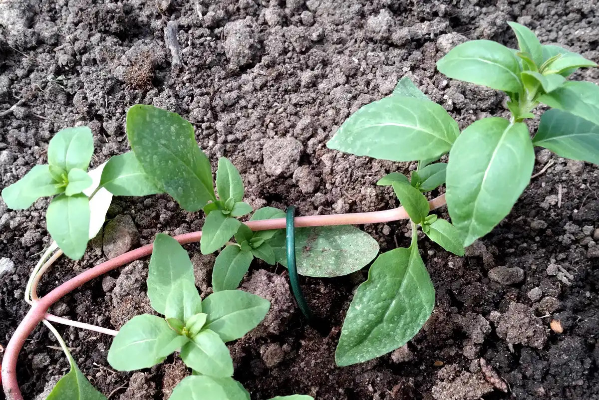 Декільком кущам годеції обрізків труб не вистачило. Виручили саморобні шпильки. Довгі гілки годеції пришпилила до землі, і вона благополучно пережила кілька днів вітряної погоди.