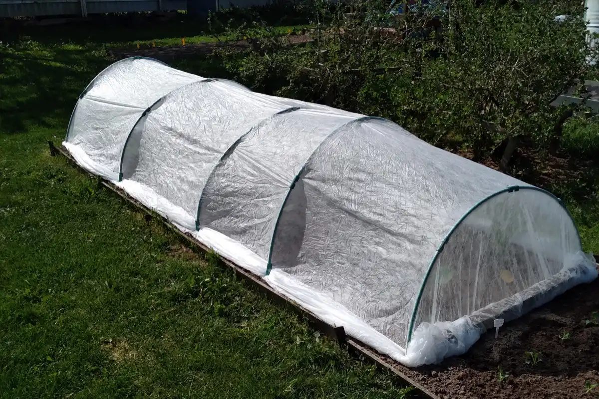 Парниками на дугах або рейках можна накрити цілком овочеву грядку або квіткову клумбу. Це зручно, коли треба захистити відразу багато рослин, що близько ростуть. Гарбузові культури теплолюбні, але листя на яскравому сонці миттєво прив'януть. Для розсади це стрес. Садова тканина добре пропускає світло, зберігає тепло, а сонячний день притінює рослини. Такий захист необхідний молодим, ще не освоєним на свіжому повітрі рослинам.