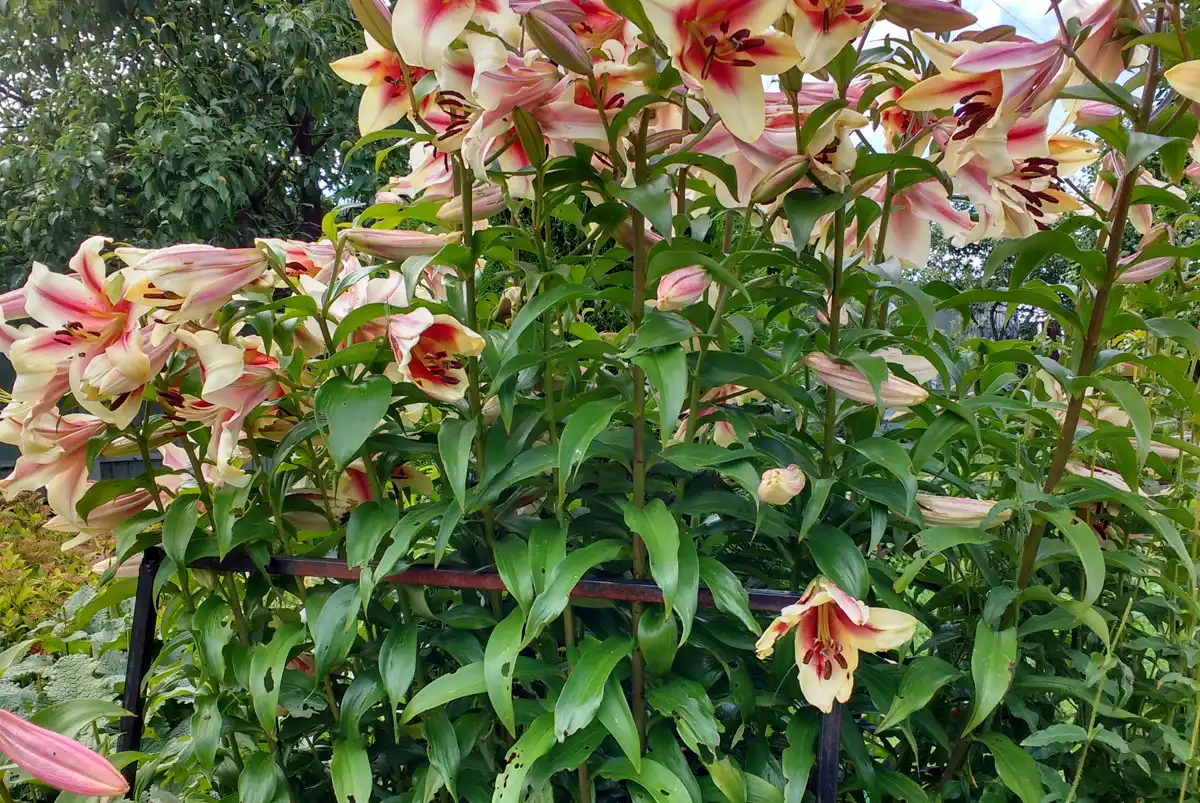 У мене ростуть двометровий дельфініум і лілії заввишки 1,5 метра. На пару метрів розкинулася стара кущова троянда. Без міцного огородження було неможливо уникнути поломок, зберегти як декоративність, так і цілісність кущів при зливах і різкому вітрі. Для виготовлення опор необхідні металеві прути або куточки, а також зварювальний апарат з умілою людиною. Потім конструкцію можна пофарбувати в будь-який колір.