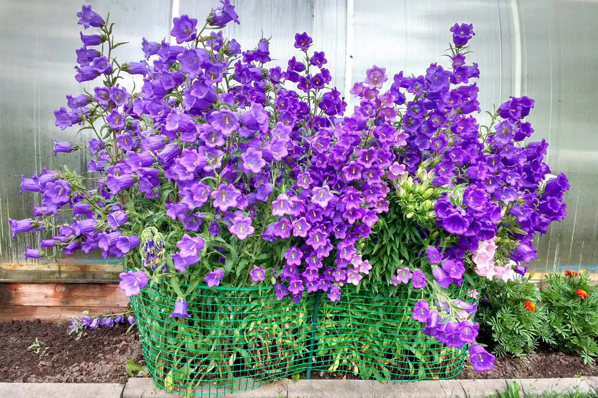 У саду сітчаста опора виглядає органічно і ненав'язливо. Симпатично, як у кошику, виглядають кущі дзвіночка, обрамлені в сітчасту опору.