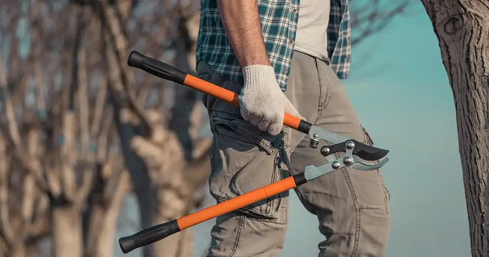 Наприкінці зими або на початку весни садові роботи стартують з обрізки дерев та чагарників. Поки вони не прокинулися, і не почався рух соку, можна сформувати крону, видалити висохлі і зламані за зиму гілки. Якщо на ділянці є кілька плодових дерев, ягідних чагарників, живоплоти та декоративні посадки, обсяг роботи може бути серйозним. І простим секатором тут важко обійтися. Для обрізки використовується ще й потужний сучкоріз – посилений секатор із довгими ручками.