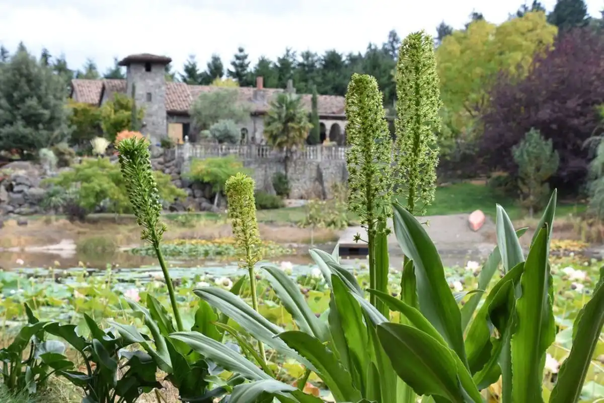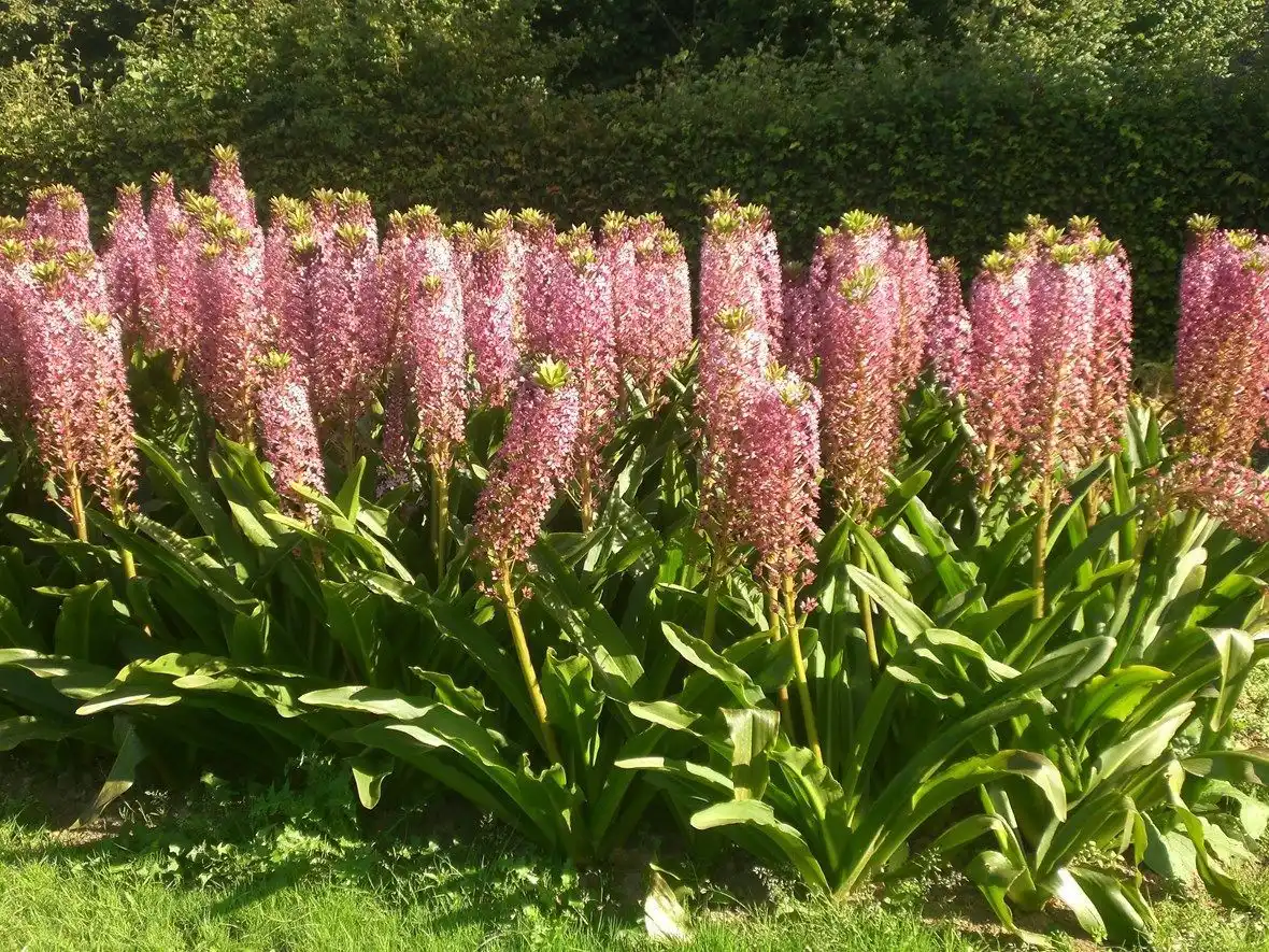 Еукоміс гігантський (Eucomis pallidiflora). Незважаючи на гучну назву, цей вид досягає висоти лише близько метра. Тим не менш його цвітіння — видовище, на яке варто подивитися. Білі квітки розпускаються влітку і зберігаються до осені, роблячи цей сорт привабливішим, ніж деякі інші різновиди.