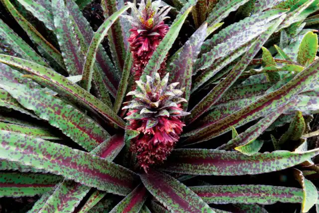 Еукоміс двоколірний (Eucomis bicolor). Відрізняється квітками салатових і жовтих відтінків із зеленою або фіолетовою облямівкою. Влітку листя навколо центральної розетки набувають приголомшливий біло-фіолетовий відтінок, що красиво контрастує з коричневими стеблами. Сама рослина невелика - 50-60 см.