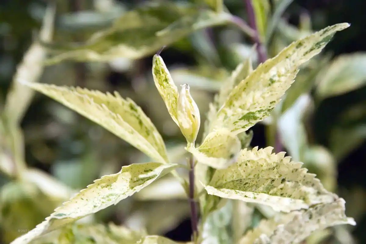 Вражаючий сорт, який має кремово-біле та зелене листя. Молоде листя відрізняє рожевий відтінок. У нього ароматні кремові та блідо-рожеві пухнасті квітки, схожі на агератум. Цвітіння починається в кінці літа. Зона морозостійкості 4-5.