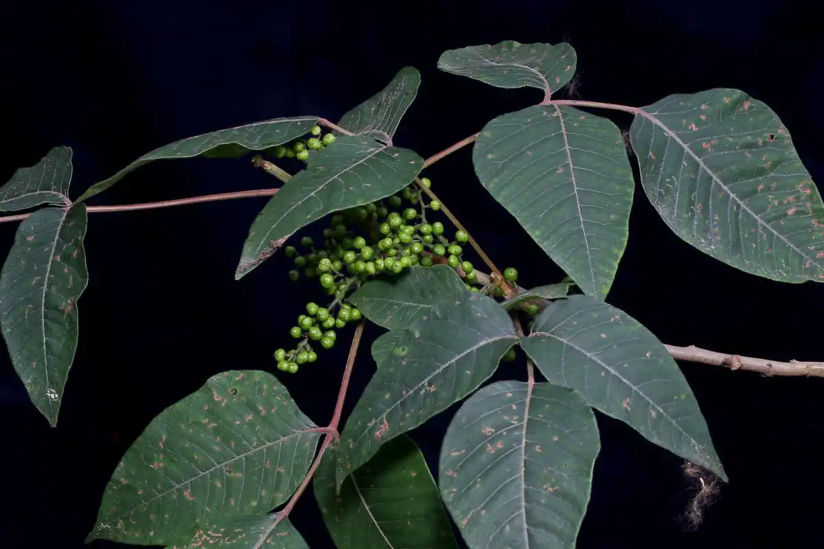 Лакове дерево (Toxicodendron vernicifluum) - дерево висотою до 20 м, широко поширене в Японії, Кореї та Китаї. Воно відрізняється складним ажурним листям і численними плодами-кістянками, зібраними в кисть, що віддалено нагадує виноградну, крім того, виділяє густий їдкий сік.