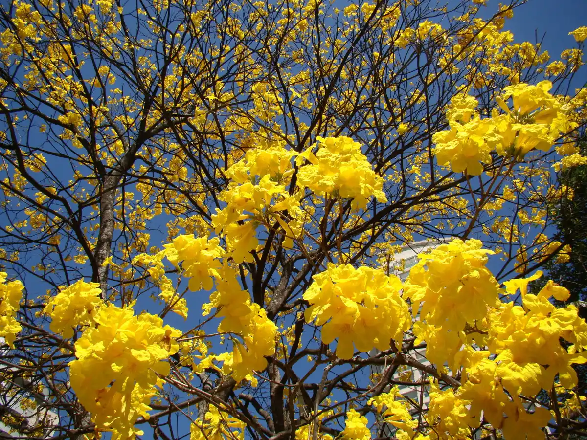 Табебуя золотиста (tabebuia chrysotricha) відома як срібне трубне дерево або золоте дерево. В англійських джерелах її чомусь називають карибським трубним деревом, хоч на Карибах вона не росте. Це невелике листопадне дерево до 8 м у висоту відрізняється яскраво-жовтими сонячними квітками, що розпускаються на гіллях безлистих. Табебуя золотиста служить домом зниклих з дикої природи папуг Пікса, популяцію яких зараз намагаються відродити.