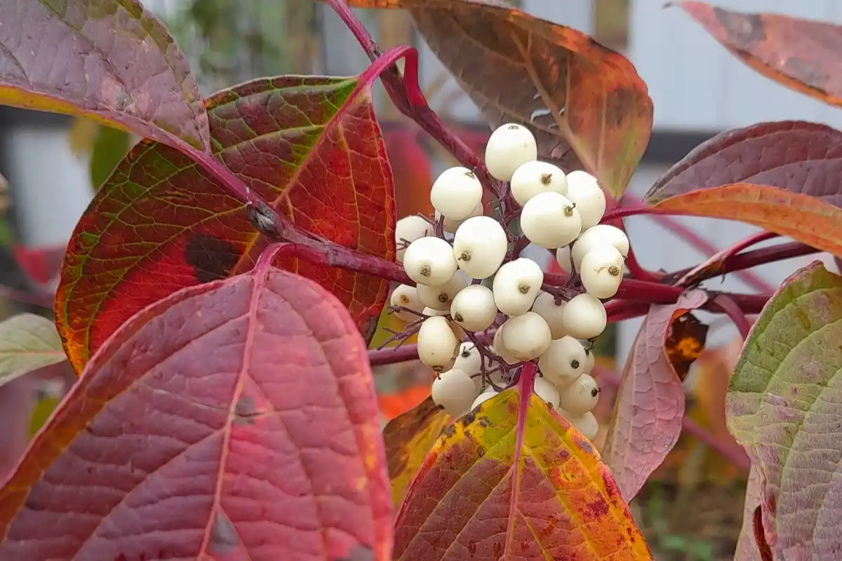 Милуватися цим видовищем можна досить довго, поки взимку ягідки не з'їдять птахів. І хоча влітку цей сорт дерева зовсім непривабливий (зелене листя і дрібні білі квітки), восени він стає справжнім королем палісадника. Щоб милуватися білими ягідками потрібно вибирати сорти саме дерева білого, тому що у криваво-червоного (Cornus sanguinea) темні плоди.