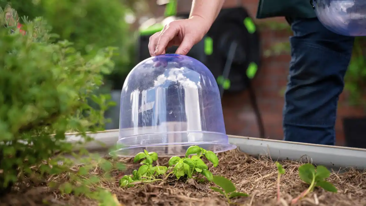 Для невеликих рослин-солітерів можна використовувати прозорий пластиковий купол. Він створює міні-тепличку, яка утримує тепло, захищаючи ніжні рослини від морозу, а якщо набити його матеріалом (лапник, сухе листя і т.д.), то вийде повітряно-сухе укриття. Спеціалізовані пластикові ковпаки часто мають вентиляційний отвір, який можна відкрити для забезпечення циркуляції повітря в теплий день.