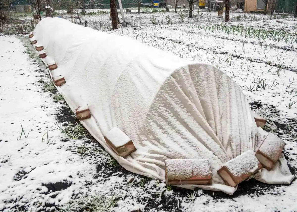 Він утримує тепле повітря навколо рослин і не дає морозу проникнути до коріння. Матеріал можна закріпити кілками. Переконайтеся, що немає щілин, через які холодне повітря може проникнути до рослини. Для швидкого та легкого захисту накрийте кущики подвійним або одинарним шаром добре закріпленого садового агроспана щільністю від 60 і вище.
