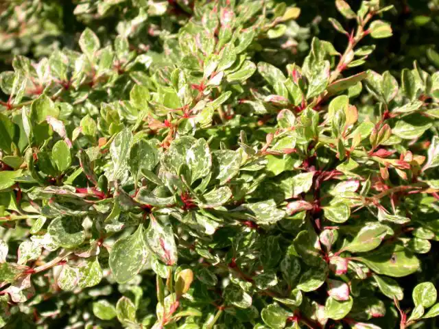 Швидкорослий сорт з майже кулястою кроною 1,2 х1, 5 м. Зелене листя вкрите білими і рожевими цятками, восени стає червоним.