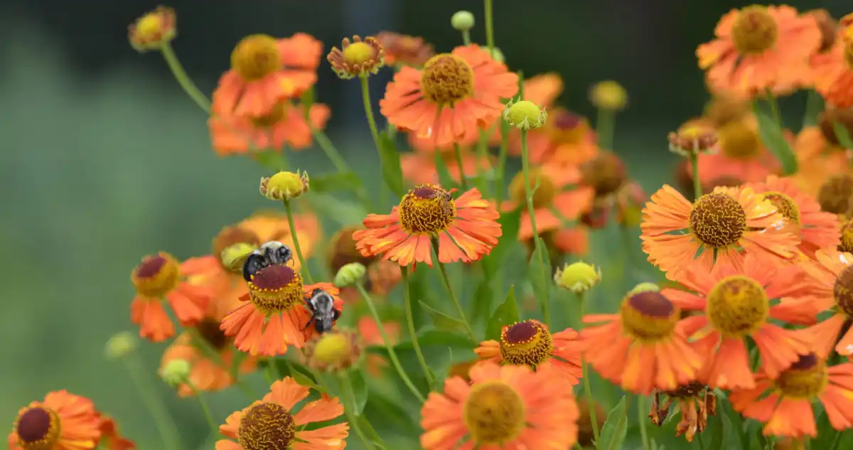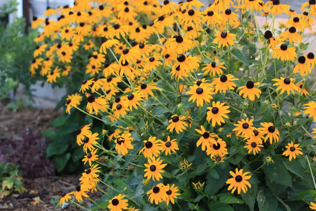 Яскраві жовті, помаранчеві та червоні ромашки рудбекії прикрашають квітник у липні-серпні, деякі сорти цвітуть до середини вересня. У висоту кущ досягає 50-100 см. Місце посадки – сонце. Віддає перевагу родючим глинистим грунтам. Найкраще виглядає на середньому плані міксбордера. На одному місці вирощують 3-4 роки.
