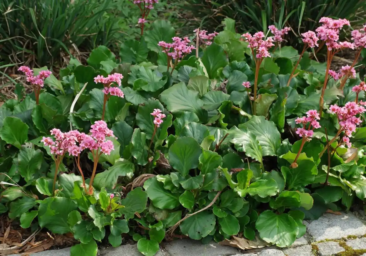 За своє велике шкірясте листя бадан отримав прізвисько «слонові вуха». темно-пурпурового.