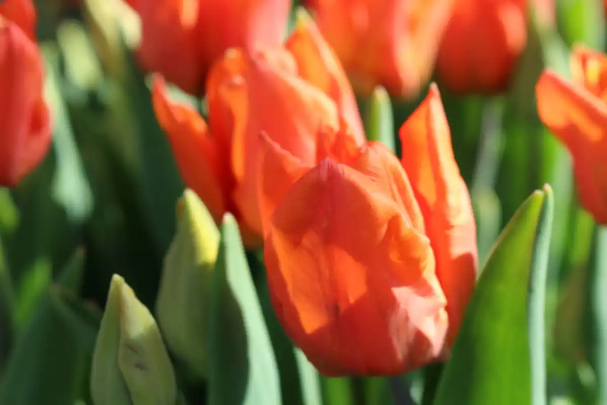 У травні додадуть нотку елегантності келихоподібні дарвінські гібриди "Оранж ван Ейк" ("Orange van Eijk") і "Дарвін Оранж" ("Darwi Orange") і лілієцвітний "Баллад Оранж" ("Ballade Orange").