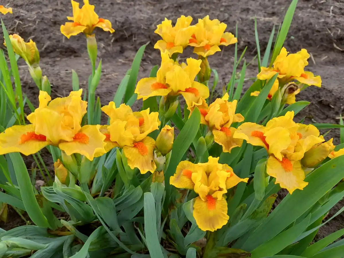 Помаранчеву атмосферу підкреслять елегантні та витончені карликові іриси «Марксман» (Marksman) і Оранж Тайгер (Orange Tiger).