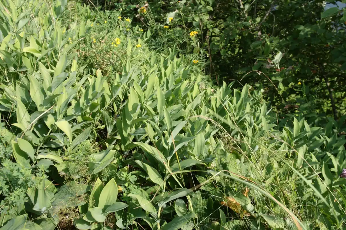 Там же часто зустрічається купена гладка (Polygonatum glaberrimum) привертаючи увагу особливою витонченістю білих квіток, що звисають.