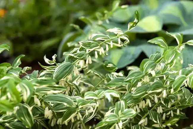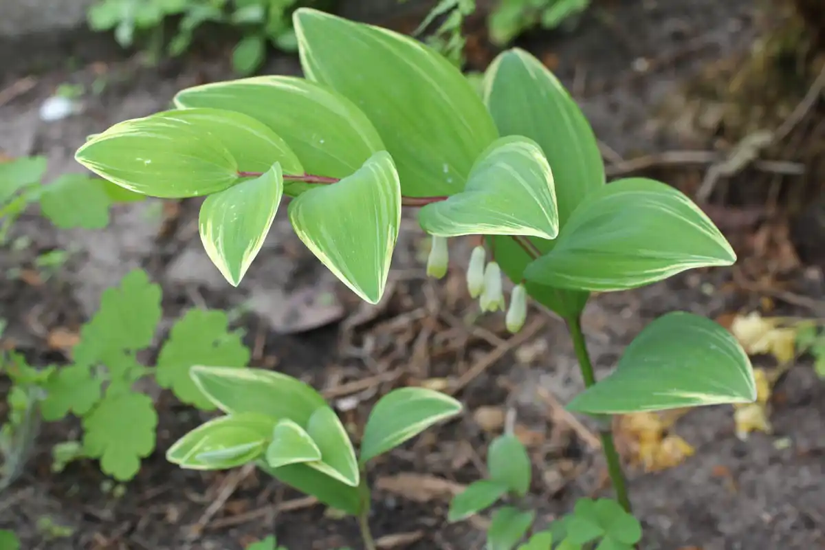 - Гібридний сорт «Стріатум» (Polygonatum falcatum 'Striatum') хизується неймовірно яскравим біло-зеленим листям.